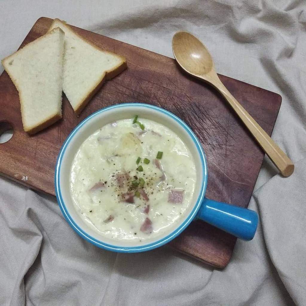 – Xào hành tây với dầu oliu, cho thêm thịt xông khói, đảo tới khi thịt xông khói hơi xém và hành tây mềm thì cho 1 phần sữa, 1 nửa nước dùng vào. Cho bánh mì xé nhỏ vào trộn đều, đun tới khi cháo hơi sánh lại, rắc thêm tiêu, nêm muối nếu thấy nhạt.