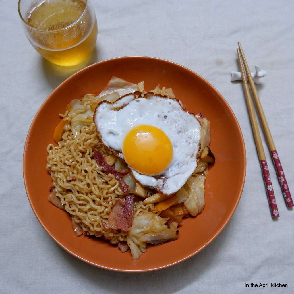 Từ nhỏ mình đã thích mê truyện tranh của Nhật Bản, trong khi các bạn đồng trang lứa đang mải mê với văn hóa thần tượng thì mình mải mê la cà nhẵn mặt ở các hàng thuê truyện, đến nỗi mẹ mình còn trêu “chưa nuôi mẹ đã nuôi cô thuê truyện rồi”. Văn hóa, ngày lễ và đặc biệt là ẩm thực Nhật Bản có ảnh hưởng rất lớn tới khẩu vị và sở thích của mình. Yakisoba, món mì xào có vị dầu hào ngòn ngọt, nhiều bắp cải giòn và thịt heo, bên trên là quả trứng ốp lòng đào sóng sánh là một trong những món được đề cập tới nhiều nhất, cũng là món mình vội vàng xếp vào danh sách yêu thích ngay từ lần đầu tiên nấu thử. Tuy có chữ “soba” trong tên nhưng Yakisoba lại hoàn toàn không dùng sợi mì kiều mạch mà dùng mì sợi bằng bột mì như bình thường, nên thay thế bằng mì ăn liền sẽ rất tiện lợi. Cùng xem cách làm bên dưới nhé.