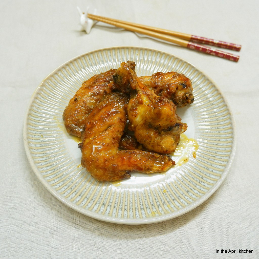 – Rưới một chút dầu lên cánh gà, lăn qua bột mì, xếp lên khay của nồi chiên không dầu, xịt dầu lên rồi cho vào quay ở nhiệt độ 180 độ trong 5-7 phút, lật mặt, xịt thêm dầu nếu cần, quay tiếp mặt còn lại tới khi vàng hẳn.