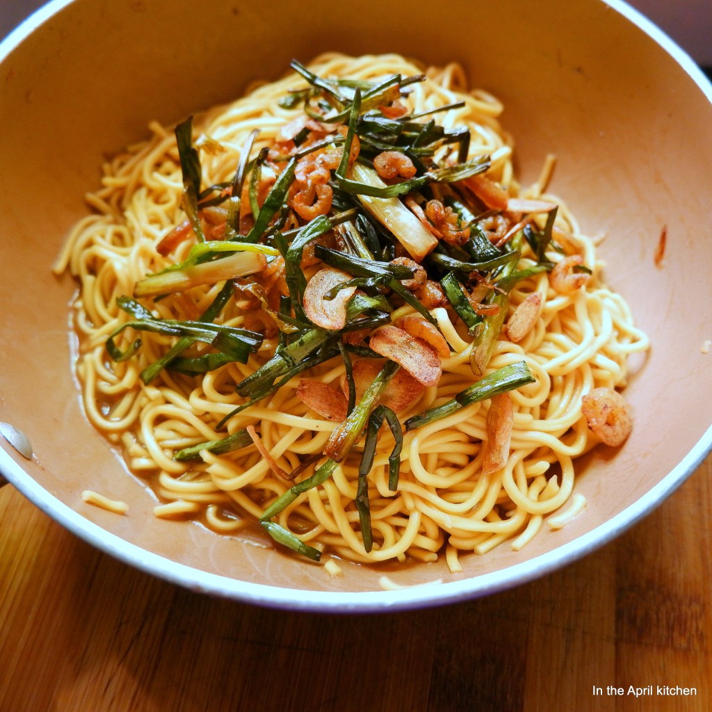 – Trộn mì với sốt cho thật đều, chia ra đĩa, rắc hành tỏi giòn và rắc tiêu lên.