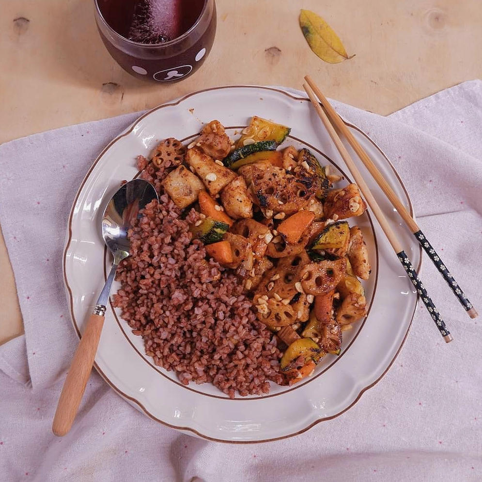 – Bí ngô non để cả vỏ, nạo bỏ ruột, thái thành miếng vừa ăn. Cà rốt bổ đôi theo chiều dọc, thái vát thành lát dày. Củ sen nạo vỏ, thái thành lát dày. Nấm đùi gà thái miếng vừa ăn.
