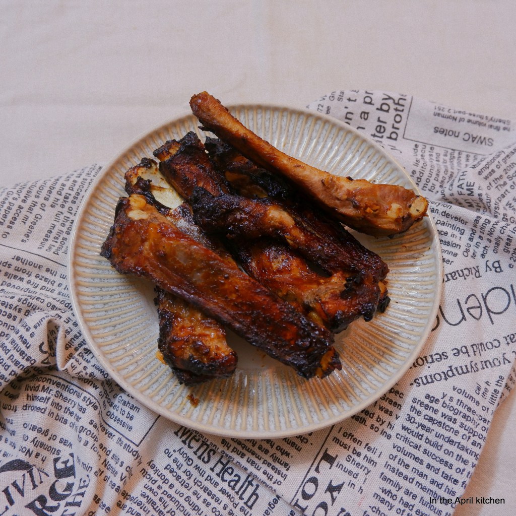 – Xếp sườn vào hộp lớn, trộn sả, hành khô và tỏi cùng tất cả các loại gia vị trừ soda. Bóp cho sườn thấm đều gia vị.