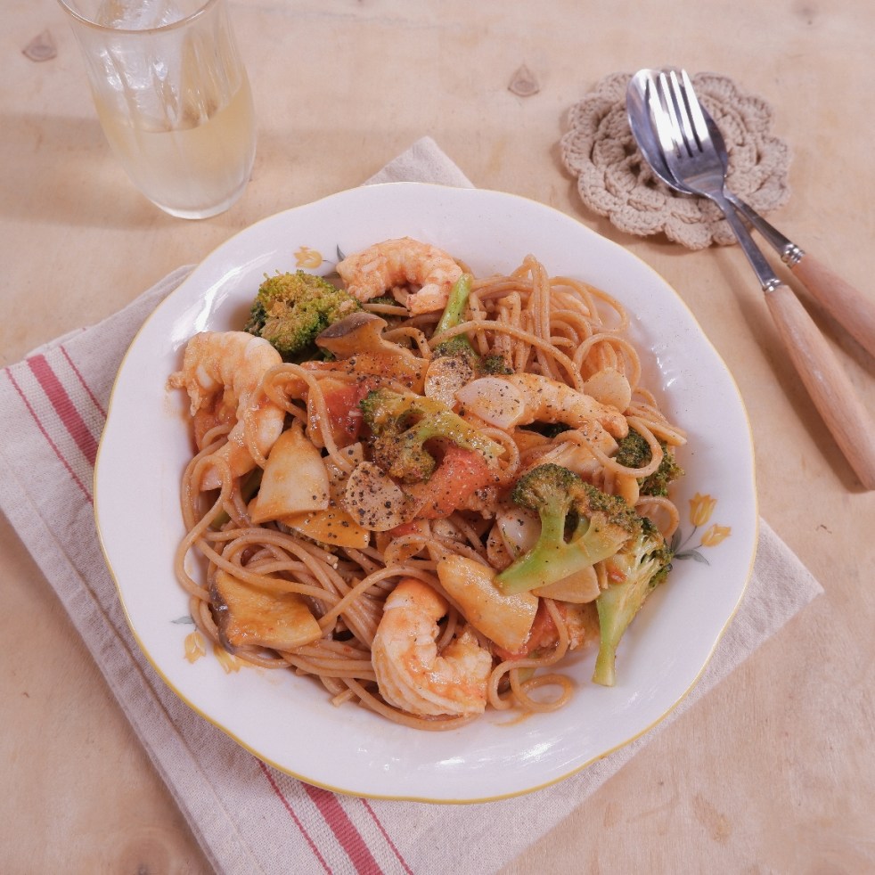 Mì ống sốt tôm và bông cải