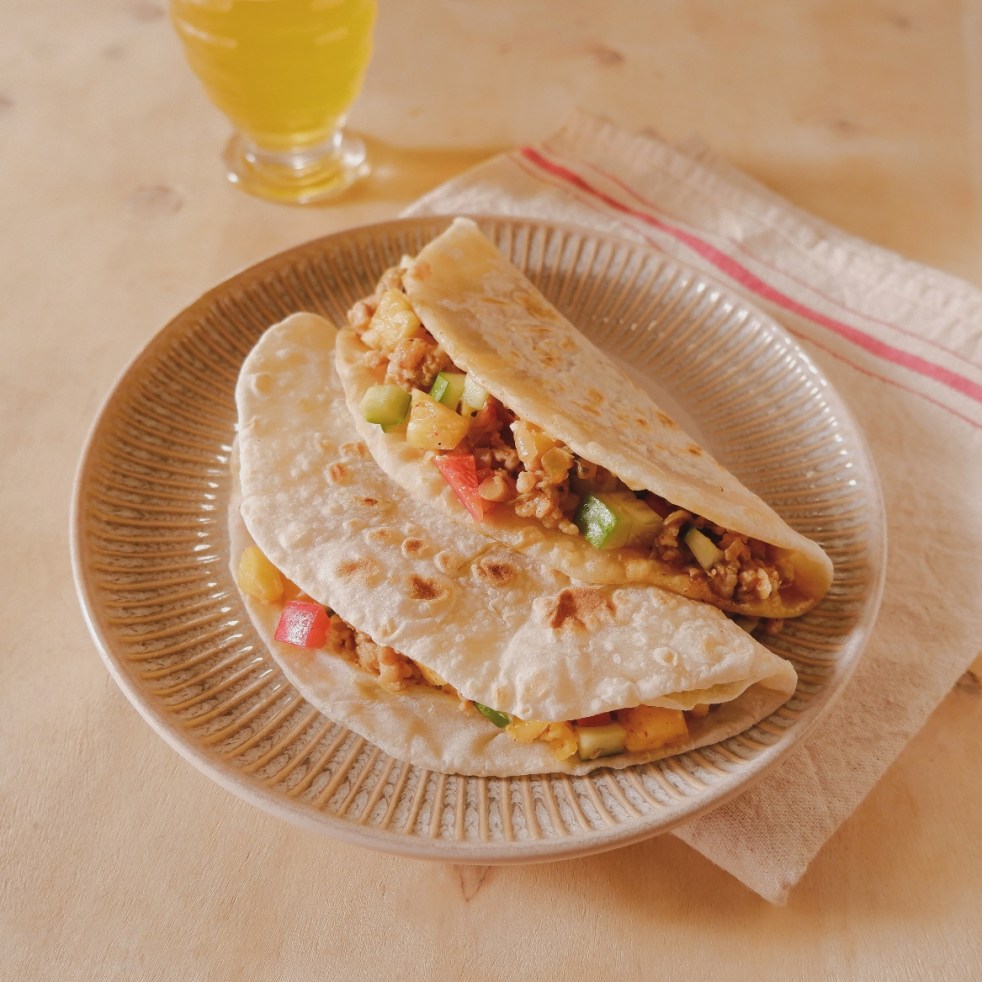 (2 người ăn) 2 vỏ bánh Tortilla đường kính 25 cm (mua sẵn hoặc làm theo công thức tại đây) 150g thịt heo xay ¼ quả ớt chuông đỏ ¼ quả ớt chuông vàng 1 quả dưa chuột Nửa củ hành tây 100g phô mai Cheddar Gia vị Taco hoặc ớt bột Cajun Cách làm:… Continue reading Bánh Quesadilla vị nhiệt đới