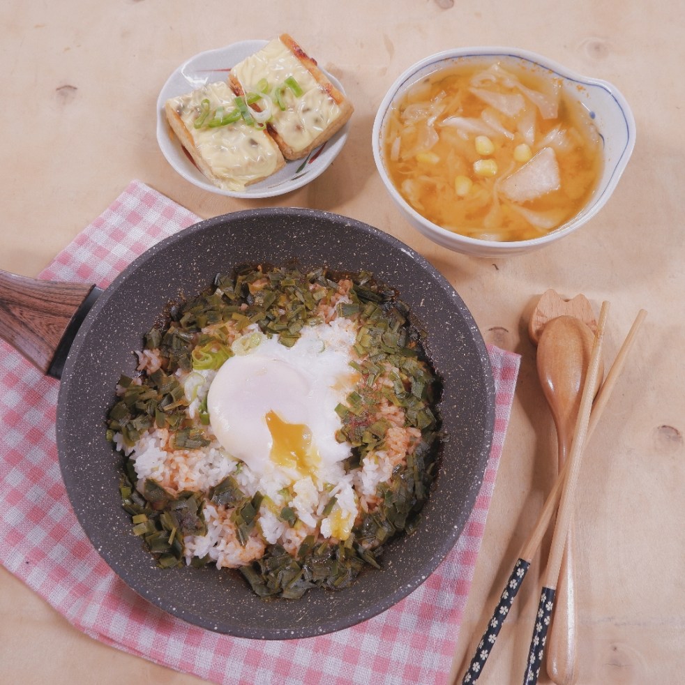 Cơm trứng chần và hẹ trộn sốt cay