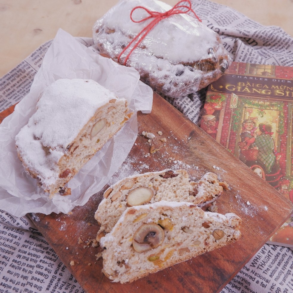 *Bột bánh 200g bột bánh mì 400g bột mì 90g đường bột ½ tbsp tinh dầu vanilla 1/8 tsp muối 1/8 tsp bột nhục đậu khấu (Nutmeg) 1/8 tsp bột quế 1 quả trứng 150g bơ động vật (để mềm ở nhiệt độ phòng) 160g sữa tươi không đường 12g men nở *Phần nhân bánh:… Continue reading Stollen