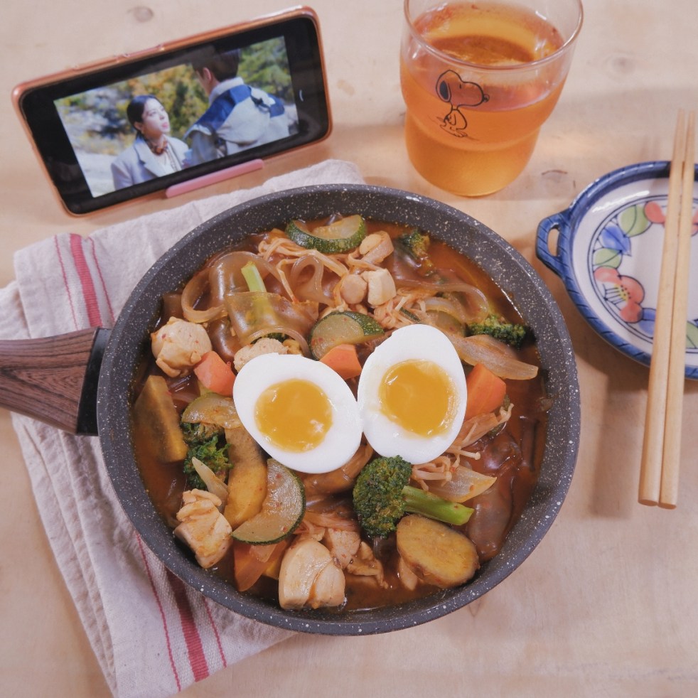 (2 người ăn) 130g miến khoai lang dạng dẹt 200g thịt má đùi gà 2 quả trứng 1 củ khoai lang nhỏ 1 quả bí ngòi 1 cây bông cải 1/3 củ cà rốt 1 gói nấm kim châm Nửa củ hành tây 3 tbsp xì dầu 3 tbsp dầu hào 3 tbsp đường ngô… Continue reading Gà hầm rau củ và miến dẹt