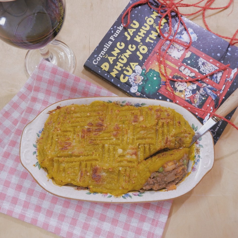 (2 người ăn) 500g bí ngô 200g thịt bò xay 4 tbsp đậu Hà Lan đông lạnh 4 tbsp đậu trắng đóng hộp sốt cà chua 4 tbsp đậu gà (đã luộc chín) Nửa củ cà rốt 1 cây cần tây 100g rượu vang đỏ 100g nước dùng 3 tbsp sốt cà chua đặc (Tomato… Continue reading Bánh Shepherd’s Pie bí ngô