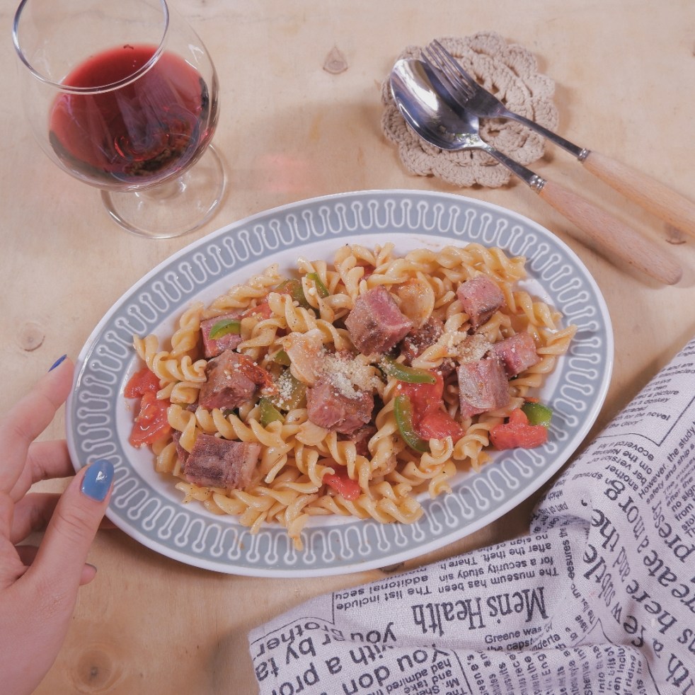 (2 người ăn) 150g nui xoắn (fusilli) 200g thăn ngoại bò (hoặc mua phần thịt để ăn bít-tết) 2 quả cà chua 5 củ tỏi to 3 tbsp dầu oliu 1 tbsp muối biển Nửa quả ớt chuông 1 tbsp phô mai bột Parmesan 2 mẩu bơ động vật nhỏ (~20g) Muối, tiêu và gia… Continue reading Nui xào dầu oliu và bít tết