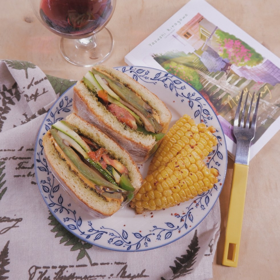 (2 người ăn) 4 lát bánh mì gối 4 tbsp sốt pesto 4 lát phô mai Cheddar 1 quả cà tím 1 quả bí ngòi 2 quả cà chua Nửa quả ớt chuông 2 cây nấm đùi gà to 3 tbsp dầu oliu Muối, tiêu và các gia vị cơ bản Cách làm: *Sơ chế… Continue reading Bánh kẹp rau củ nướng và phô mai