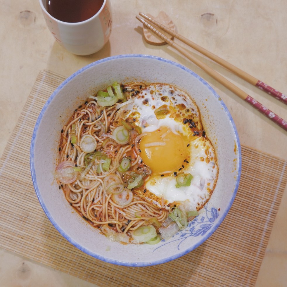 – Đun sôi nước dùng, chia ra bát, đặt trứng và rắc hành boa-rô lên.