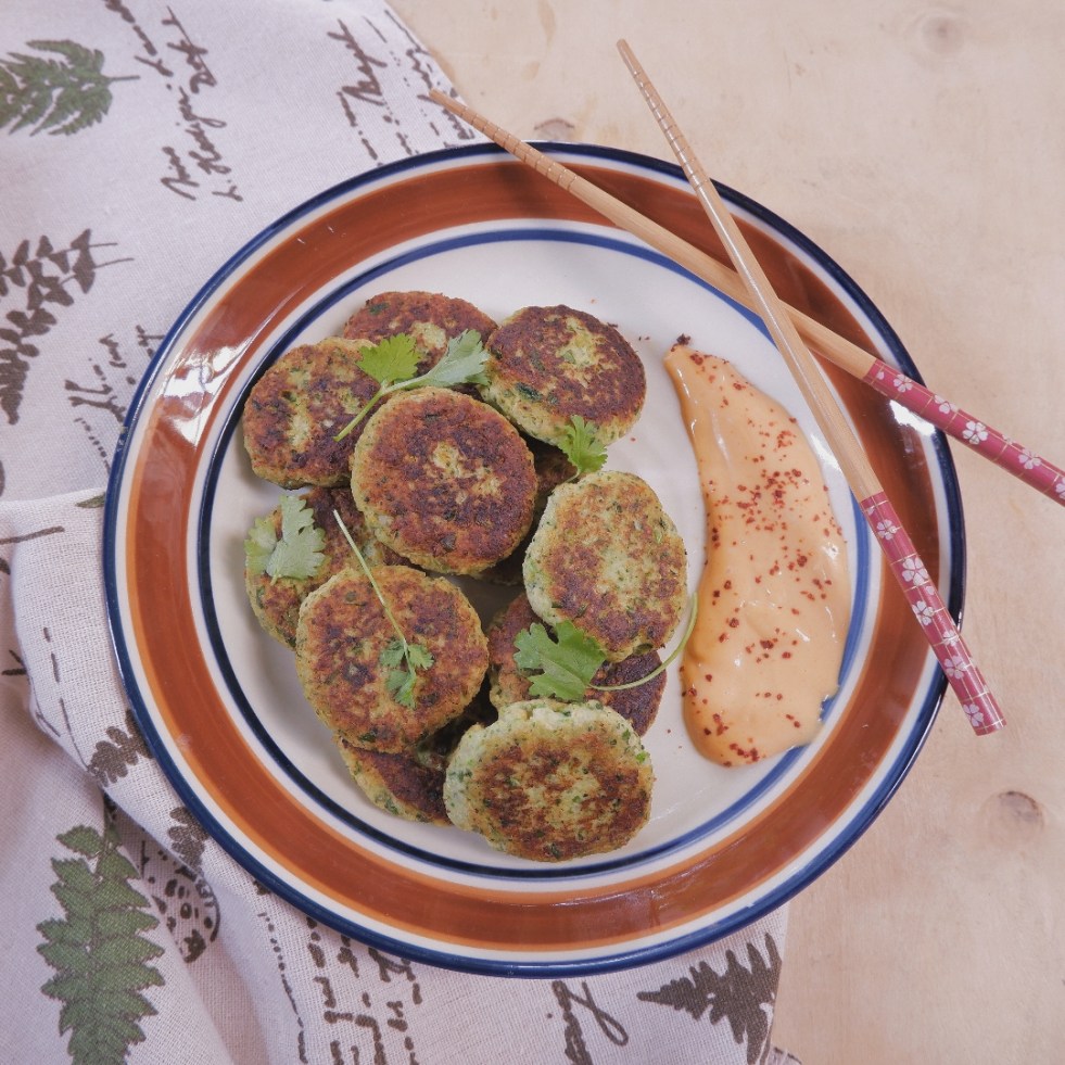 – Láng một lớp dầu mỏng lên chảo, cho bánh đậu gà vào chiên vàng hai mặt. Hoặc xếp lên khay nướng của nồi chiên không dầu, phết thêm một lớp dầu mỏng hoặc xịt dầu, nướng khoảng 170-175 độ C trong khoảng 5 phút, lật mặt rồi nướng tiếp khoảng 3 phút nữa hoặc tới khi mặt bánh vàng là được.