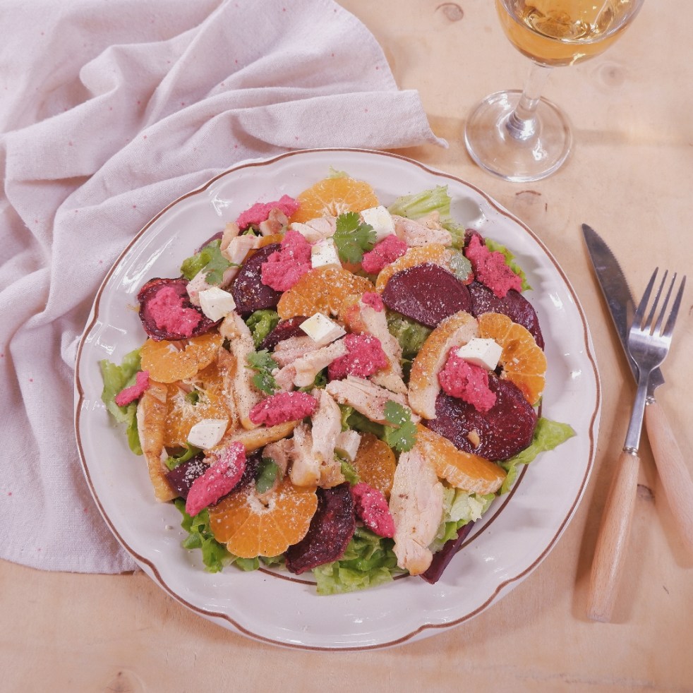 Salad gà nướng với cam, củ dền và sốt Hummus củ dền