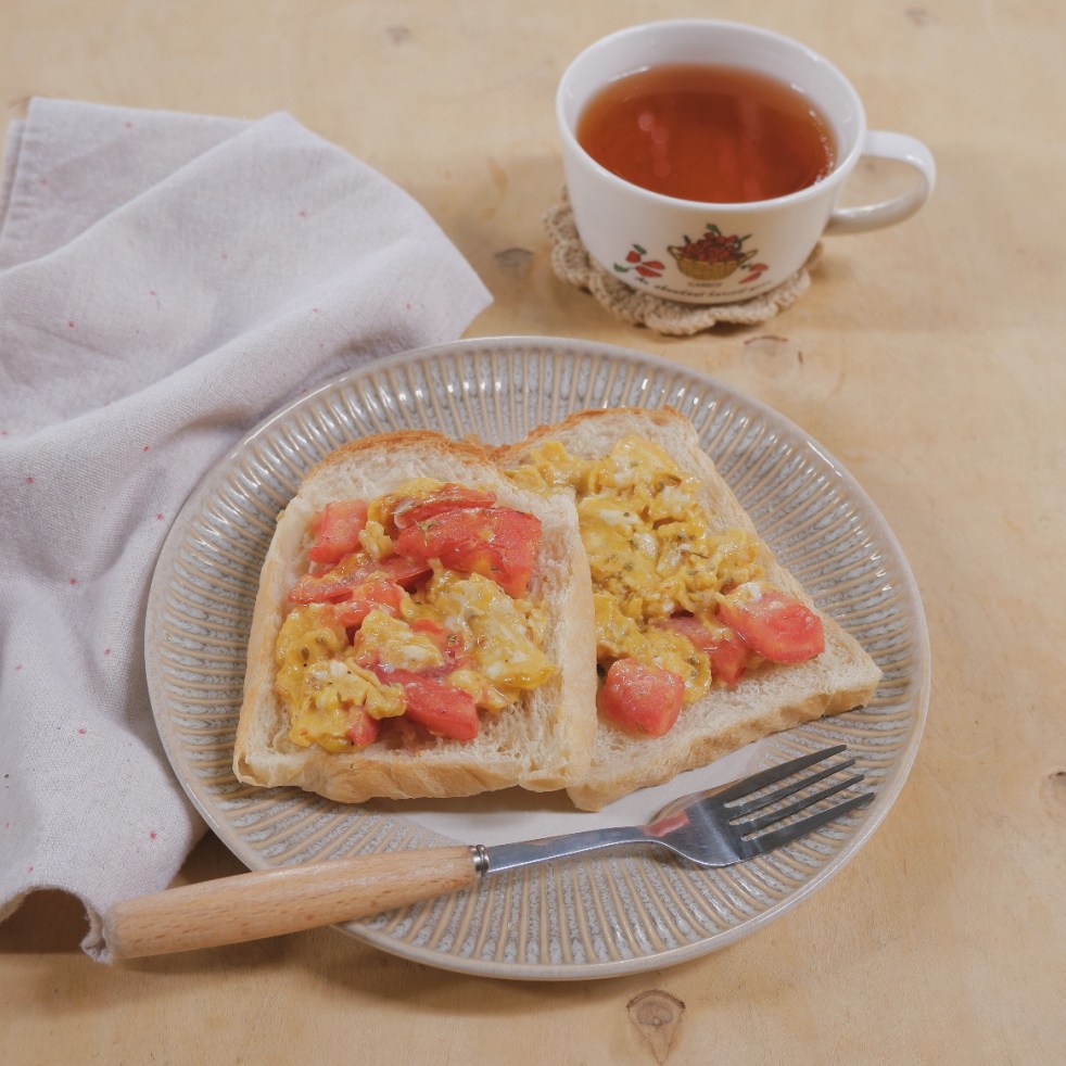 Bánh mì nướng bơ với trứng khuấy cà chua