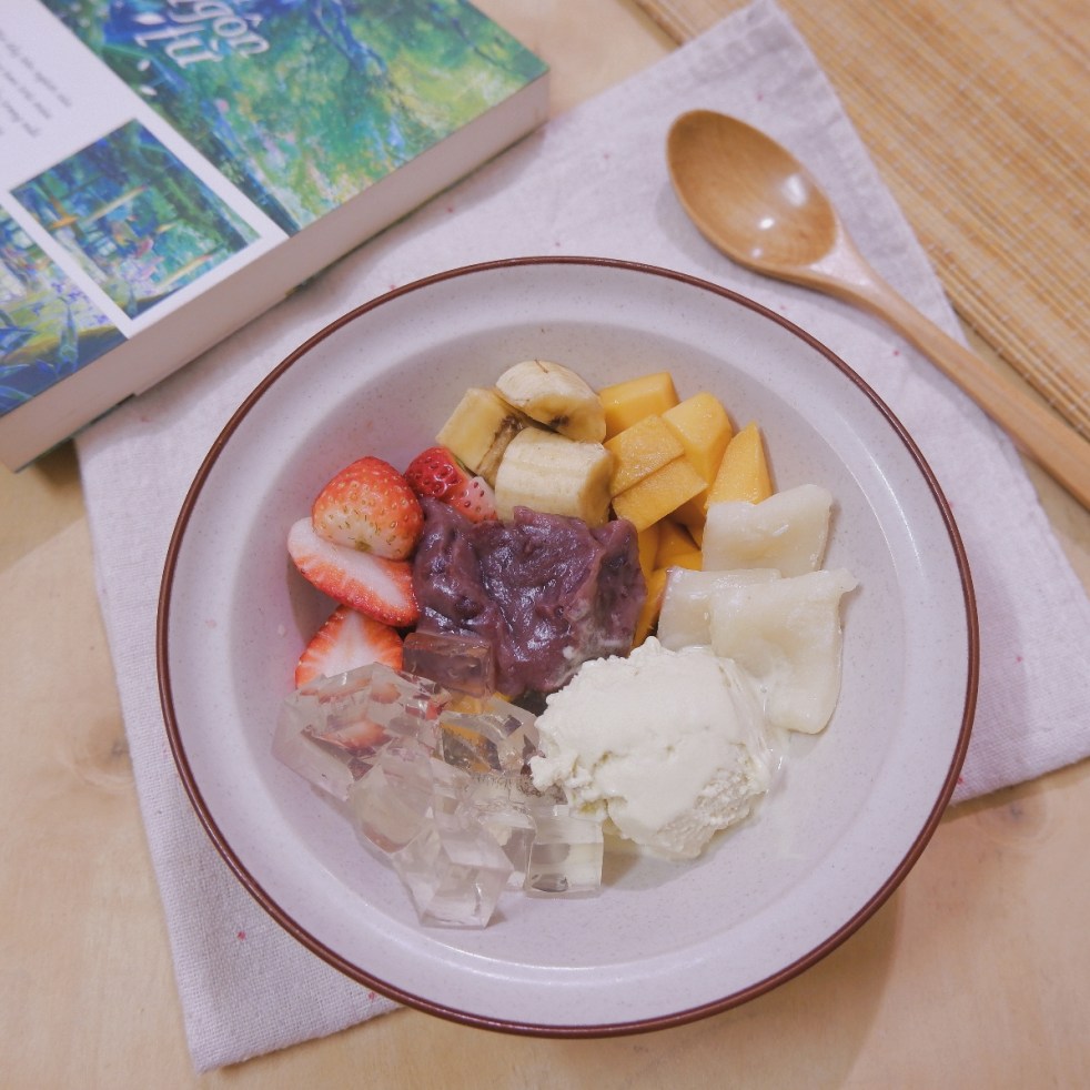 (2 người ăn) 3 quả dâu to 1 quả chuối Nửa quả xoài chín 2-3 viên kem vanilla (hoặc bất kỳ mùi vị kem nào bạn thích) *Thạch (Kanten) 1 tsp bột agar-agar 250g nước lọc 3 tbsp đường kính trắng 1/2 tsp tinh dầu vanilla (vanilla extract) *Mứt đậu đỏ thô (Tsubuan) 100 g… Continue reading Anmitsu