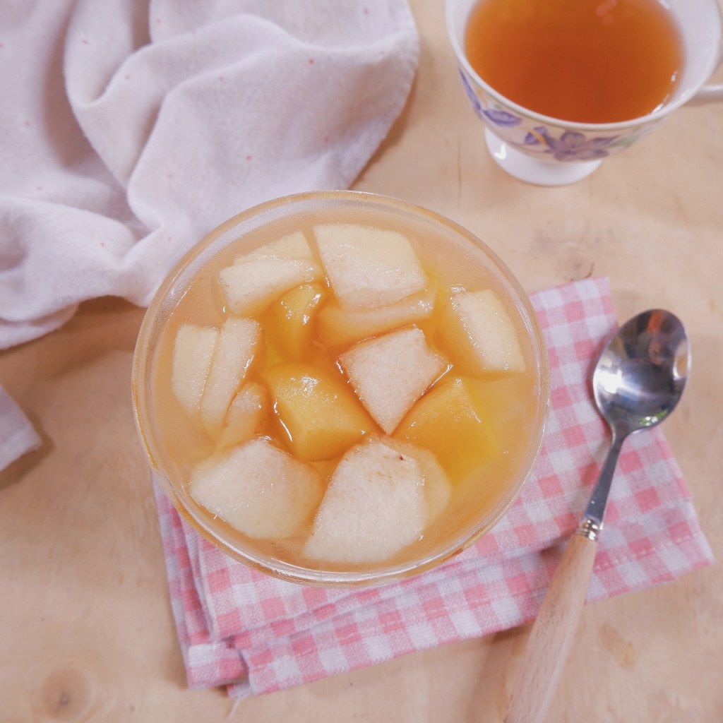 – Sau khoảng 2 giờ. Chia bột báng lên thạch, rưới thêm mật mía lên và ăn lạnh.