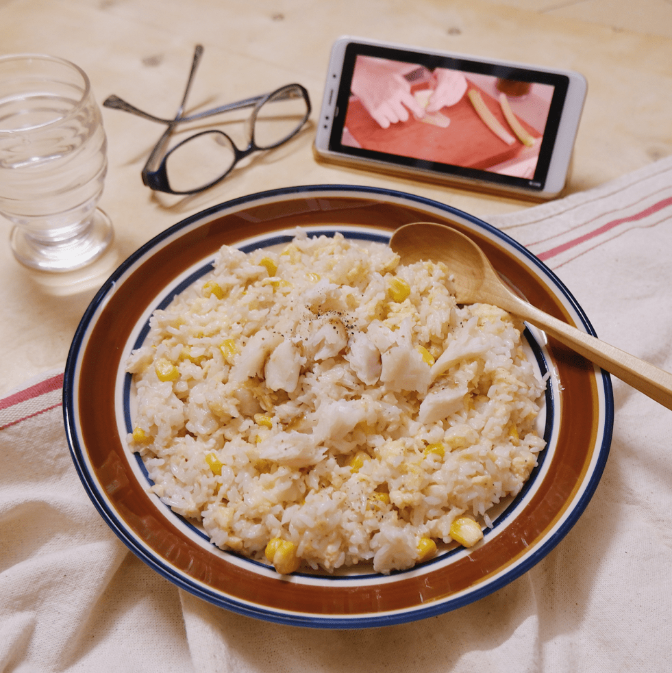 Salad cơm với cá và ngô ngọt