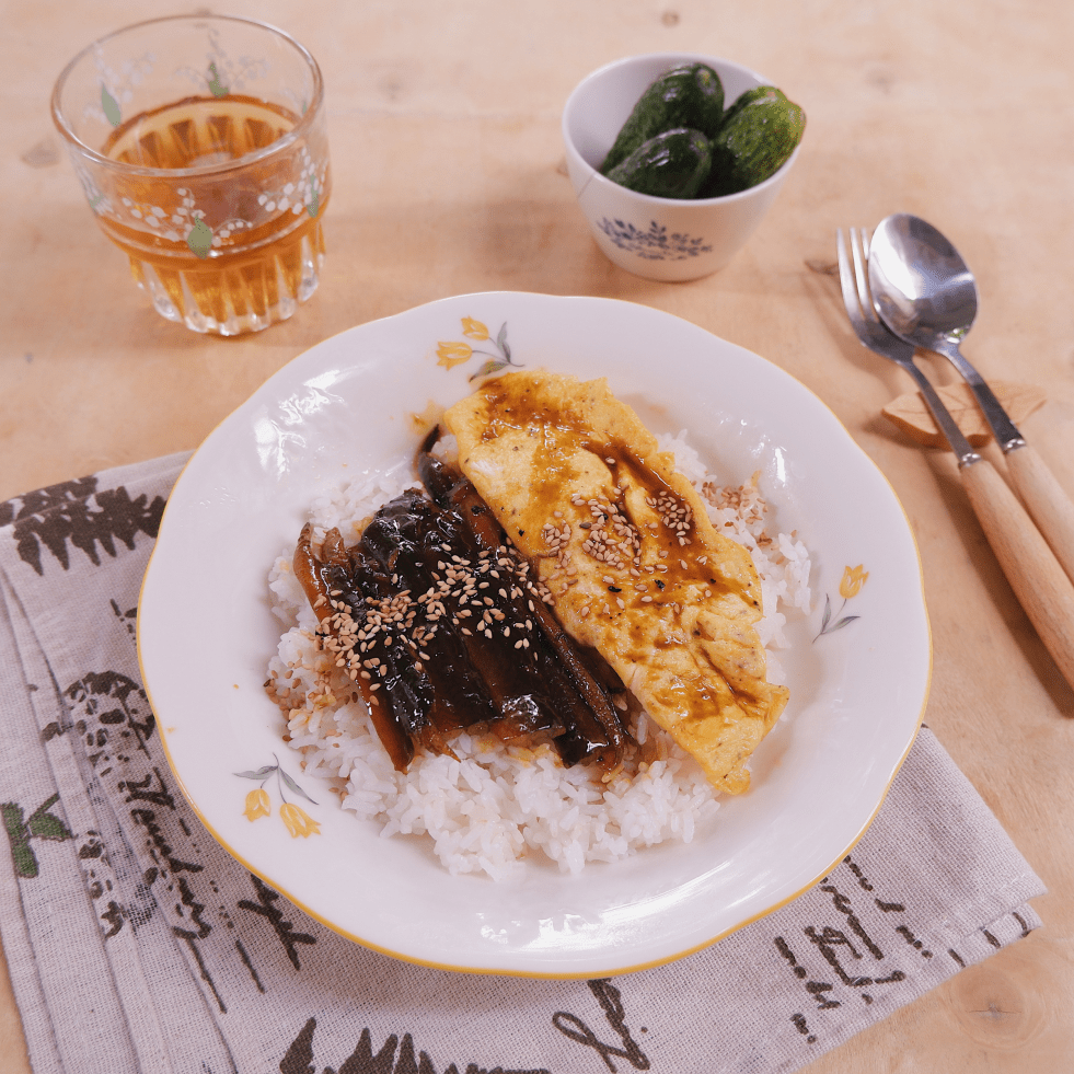 Cơm với trứng xốp mềm và lươn sốt mặn ngọt