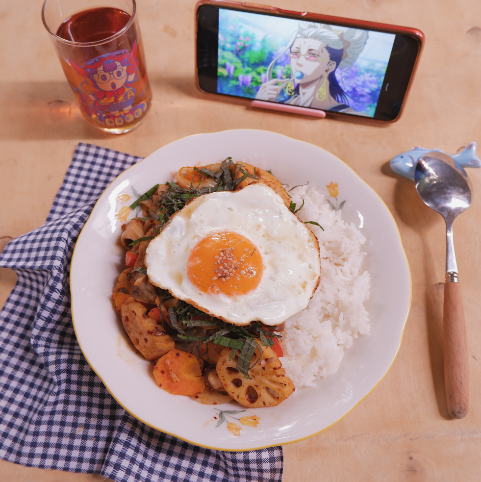 (2 người ăn) 2 bát cơm trắng (~150g/bát) 2 quả trứng gà 2 củ sen nhỏ 1 củ cà rốt 100g nấm sò nâu 4-5 cây nấm hương tươi Nửa củ hành tây Nửa quả ớt chuông 3-4 cái lá vừng 3 tbsp xì dầu 1 tbsp ớt bột Hàn Quốc (gochugaru) 2 tép tỏi… Continue reading Cơm rau củ xào cay với trứng ốp
