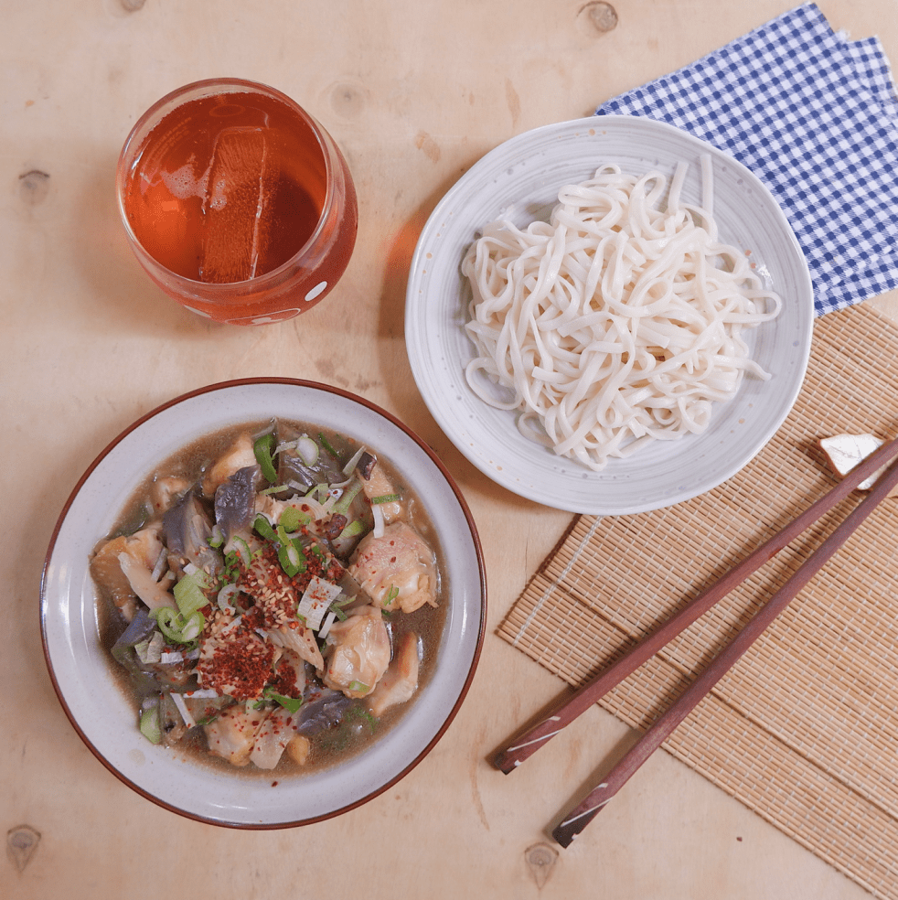 – Nhúng từng gắp mì nhỏ vào sốt, khuấy đẫm trong sốt trước khi ăn.