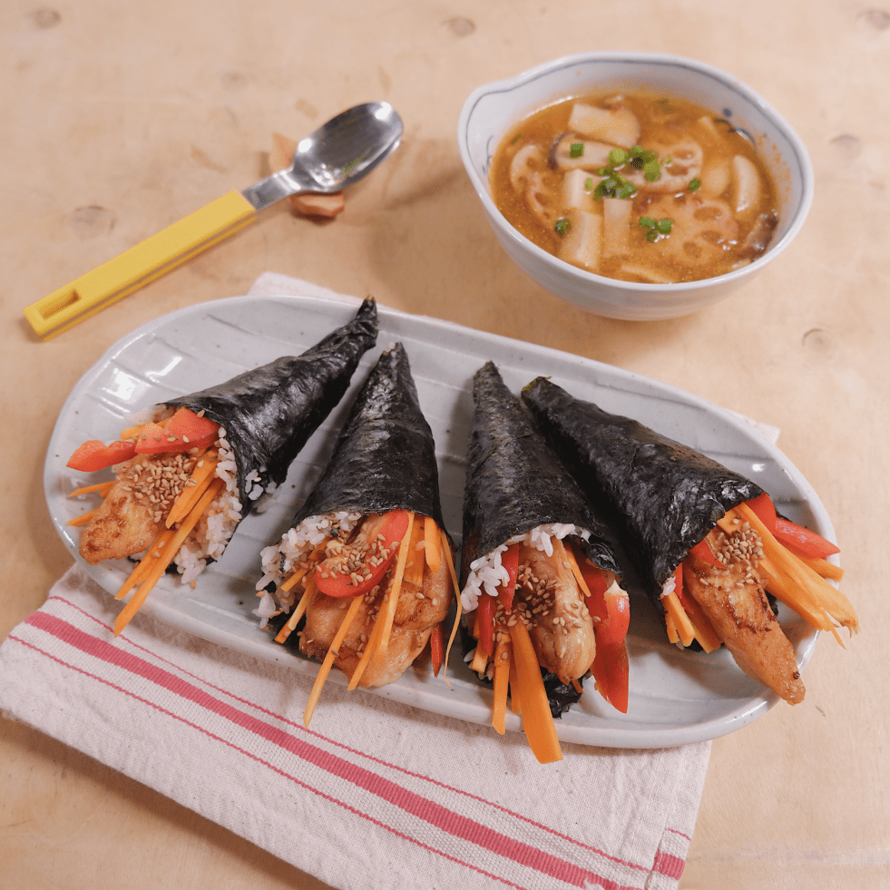 *Cách cuộn temaki (Bạn có thể search How to fold a Temaki để dễ hình dung hơn)
