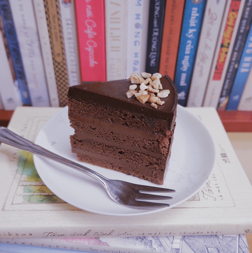 – Chia bánh làm 4 phần mỏng, chia phần kem ganache làm 3 phần. Lót phần bạt chắc chắn nhất xuống dưới cùng, tiếp đến là kem ganache, tiếp theo nữa là bánh, cứ như vậy tới khi hết. Bỏ bánh vào tủ lạnh.