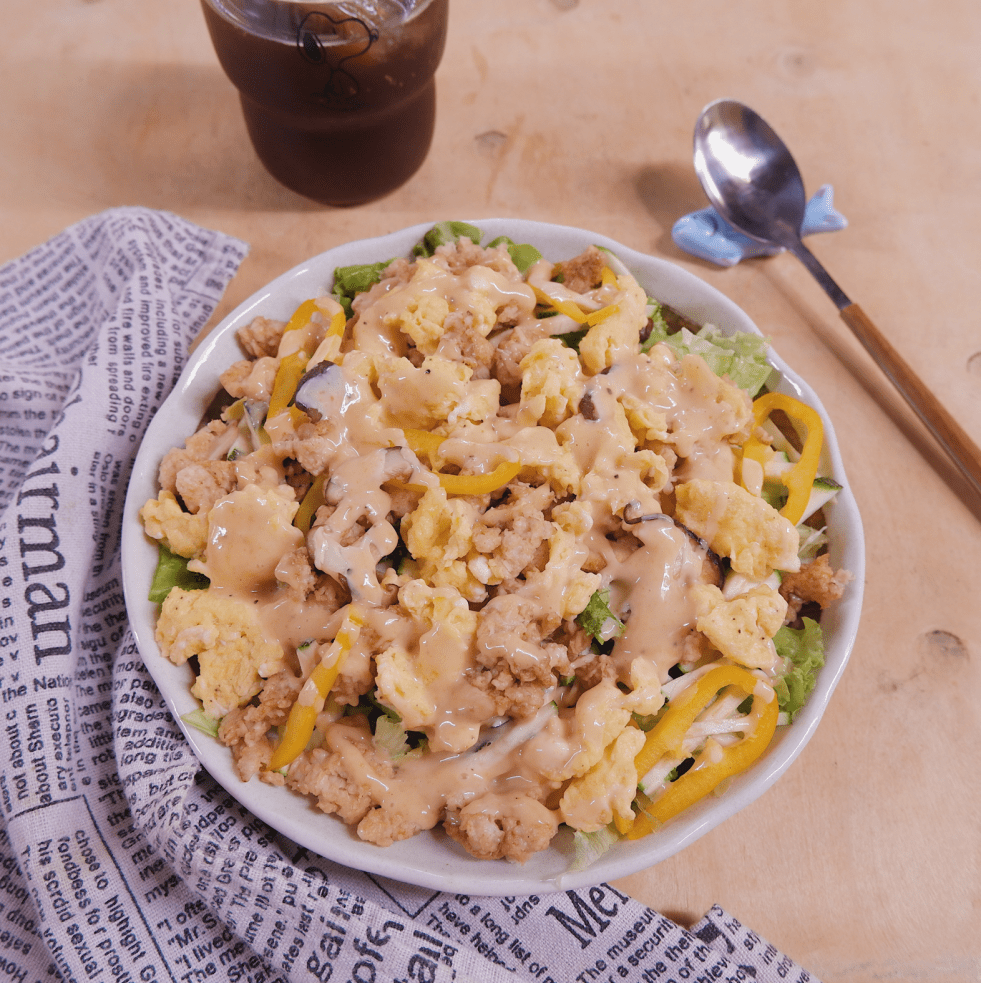 (2 người ăn) 100g yến mạch cán vỡ 4 quả trứng gà 2 quả ớt trái cây 1 cây xà lách 1 quả bí ngòi 5-6 cây nấm hương tươi 2-3 tbsp sốt mè rang Kewpie Muối, tiêu và gia vị cơ bản Cách làm: - Xà lách tách lá, rửa sạch để ráo. Ớt… Continue reading Salad yến mạch với trứng bác