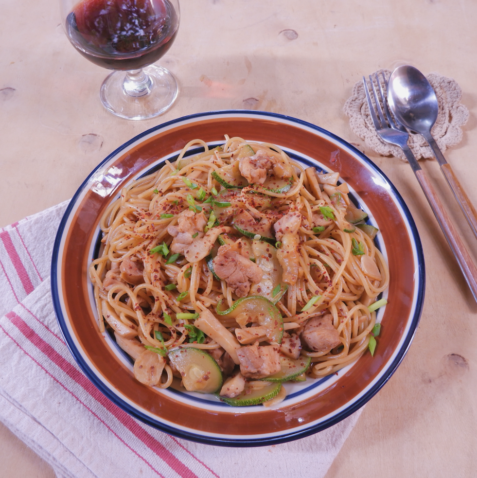 (2 người ăn) 150g mì ống (spaghetti) 1 quả bí ngòi 2 cái má đùi gà 2 cây nấm đùi gà 1 cây hành lá 3 tép tỏi to 1 tbsp ớt bột 2 tbsp dầu oliu Muối, tiêu và gia vị cơ bản. Cách làm: - Luộc chín mì ống theo thời gian ghi… Continue reading Mì ống xào cay với gà và bí ngòi