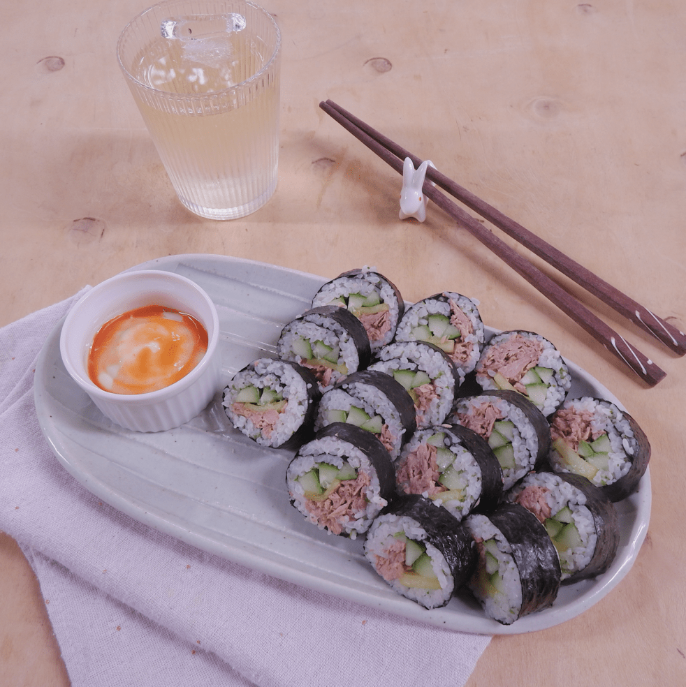 (2 người ăn) 2 bát cơm trắng 2 lá rong biển cuộn cơm 1 quả dưa chuột 2 hộp cá ngừ ngâm dầu 50g củ cải muối chua 2 tsp giấm 1 tsp đường 2 tbsp sốt mayonnaise 1 tbsp tương ớt Cách làm: - Cá ngừ để ráo trên rây. - Trộn cơm nóng… Continue reading Cơm cuộn cá ngừ đóng hộp