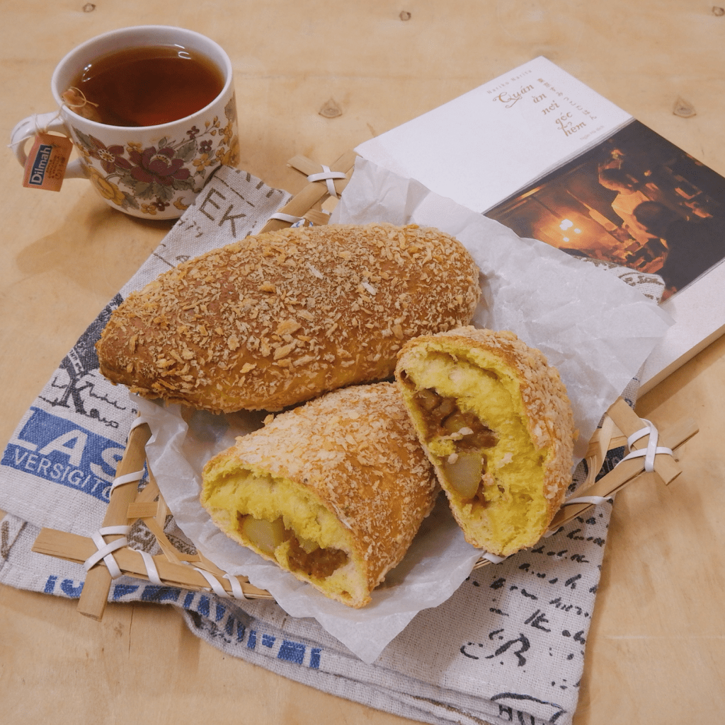 – Để bánh nghỉ khoảng 10 phút thì bắt đầu tạo hình. Cán mỏng bột thành hình bầu dục, xúc phần nhân cà ri đã đông vào, dùng thìa dàn cho phần nhân thuôn theo chiều dài của bánh. (Đừng dùng tay chạm vào nhân, phần dầu của nhân sẽ làm tay bạn miết bột bánh không dính). Nhẹ nhàng kéo hai bên mép bánh lên miết chặt vào nhau, miết càng chặt càng tốt. Bóp cho bánh thuôn đều, lúc này trông bánh sẽ cực gì giống một múi sầu riêng tươi.