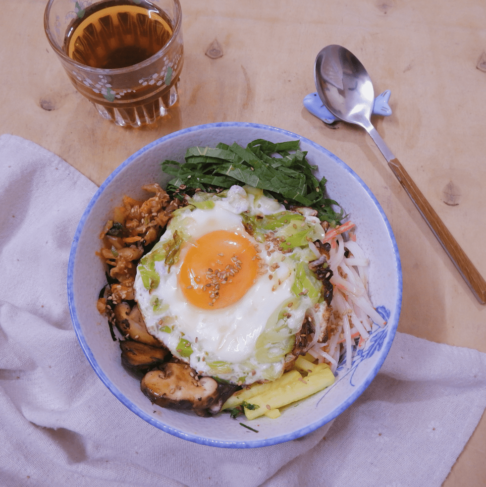 (2 người ăn) 2 bát cơm trắng 2 quả trứng gà 1 cây hành boa rô 100g kimchi 4 cái lá vừng 1 quả táo 6 cây nấm hương tươi 4 chiếc thanh cua 2 tbsp tương ớt Hàn Quốc 1 tsp vừng rang 2 tsp dầu vừng 1 hộp rong biển ăn liền Muối,… Continue reading Cơm trộn với trứng ốp hành