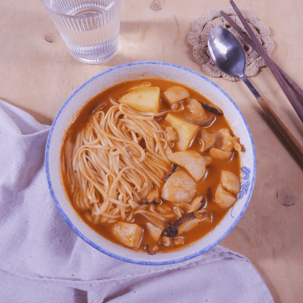(2 người ăn) 2 vắt mì ramen khô 2 cái má đùi gà rút xương 4-6 cây nấm hương tươi 2 cây nấm đùi gà 2 củ khoai tây to (~200g) 1 gói cà ri Massaman (gói 50g) 100g nước cốt dừa 400g nước lọc Muối, tiêu và gia vị cơ bản Cách làm: -… Continue reading Mì ramen vị cà ri Massaman
