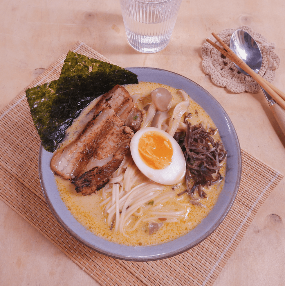 Mì ramen với nước dùng sữa đậu nành, xá xíu và mộc nhĩ