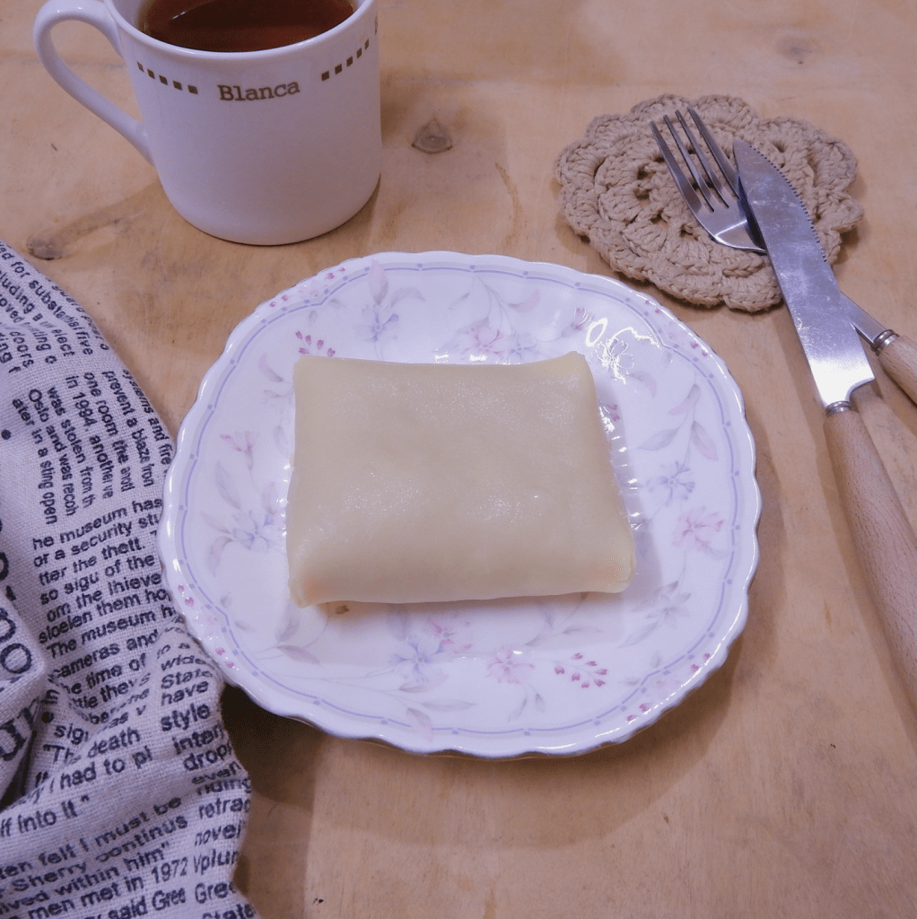 – Chia kem làm 4 phần, múc kem vào chính giữa miếng bánh, gấp lại như phong thư, đây là cách gói crepe chứa được nhiều kem nhất. Để lạnh thêm 15 phút thì bánh sẽ ngon hơn.