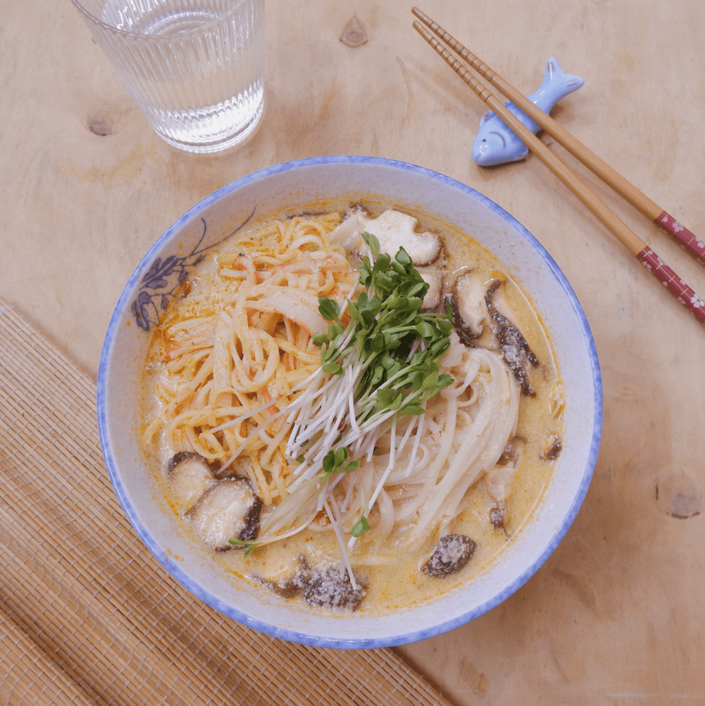 – Luộc chín mì trong khoảng 4-5 phút rồi xả cho ráo, chia mì vào các bát. Có thể đun nóng liu riu để làm nóng nước dùng, chia rau củ và nấm vào bát mì, chan phần nước dùng lên. Chia thanh cua xào và rau mầm vào bát, ăn nóng.