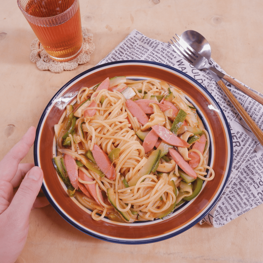 – Mở vung, thêm mì ống vào, đảo đều mì trong sốt khoảng 2 phút cho sợi mì hoà quyện và bay bớt hơi nước thừa thì tắt bếp.