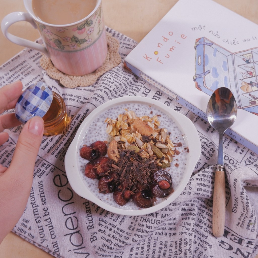 Những thứ ngọt ngào Những món ngọt không phải bánh trái như mứt hay pudding luôn là một chút ngọt ngào đặc biệt trong bếp. Mình có những món ngọt nào nhỉ? • • • Pudding hạt chia Thạch trà sữa trân châu đường đen Kem nấu kiểu Ý với mứt dâu tươi/Panna cotta Bánh phô mai dâu không cần nướng Sữa chua dâu đông Bánh phô mai kem đậu phụ Khoai lang nướng kiểu Nhật “Black forest” chia pudding Nama chocolate Nougat Nougat trứng muối chà bông Tiramisu dâu tây Thạch dâu tây với mật mía và bột báng Thạch trái cây mật mía Tàu hũ với thạch, dâu tây ướp mật và bột báng Bánh phô mai chanh xanh Cháo sữa yến mạch Mousse chanh leo Kem Catalan/ Catalan cream Dâu tây bọc socola Khoai lang nướng nhồi phô mai Custard với nho và anh đào • • • YẾN MẠCH NGÂM QUA ĐÊM Vani Socola Matcha Sữa chua mít Bơ lạc socola Kiwi Cafe