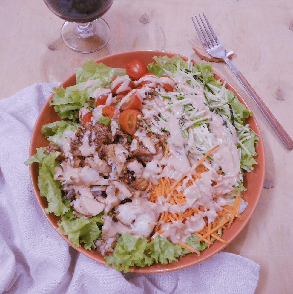 Salad cá nướng và rau củ bào sợi