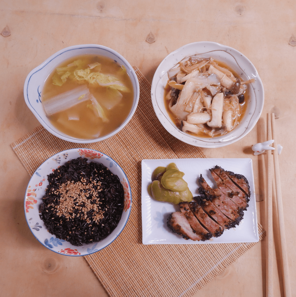 (1 người ăn) *Thịt ướp muối chẩm chéo nướng 150g thịt heo đầu giòn 2 tsp muối chẩm chéo 1 tsp dầu ăn 1-2 quả dưa chuột muối Cách làm: Thịt heo rửa sạch, để nguyên miếng, ướp với muối chẩm chéo và dầu ăn trong khoảng 30 phút. Xếp lên khay của nồi chiên… Continue reading #31 Thịt ướp muối chẩm chéo nướng, nấm xào sa tế, canh tương cải thảo và cơm gạo lứt