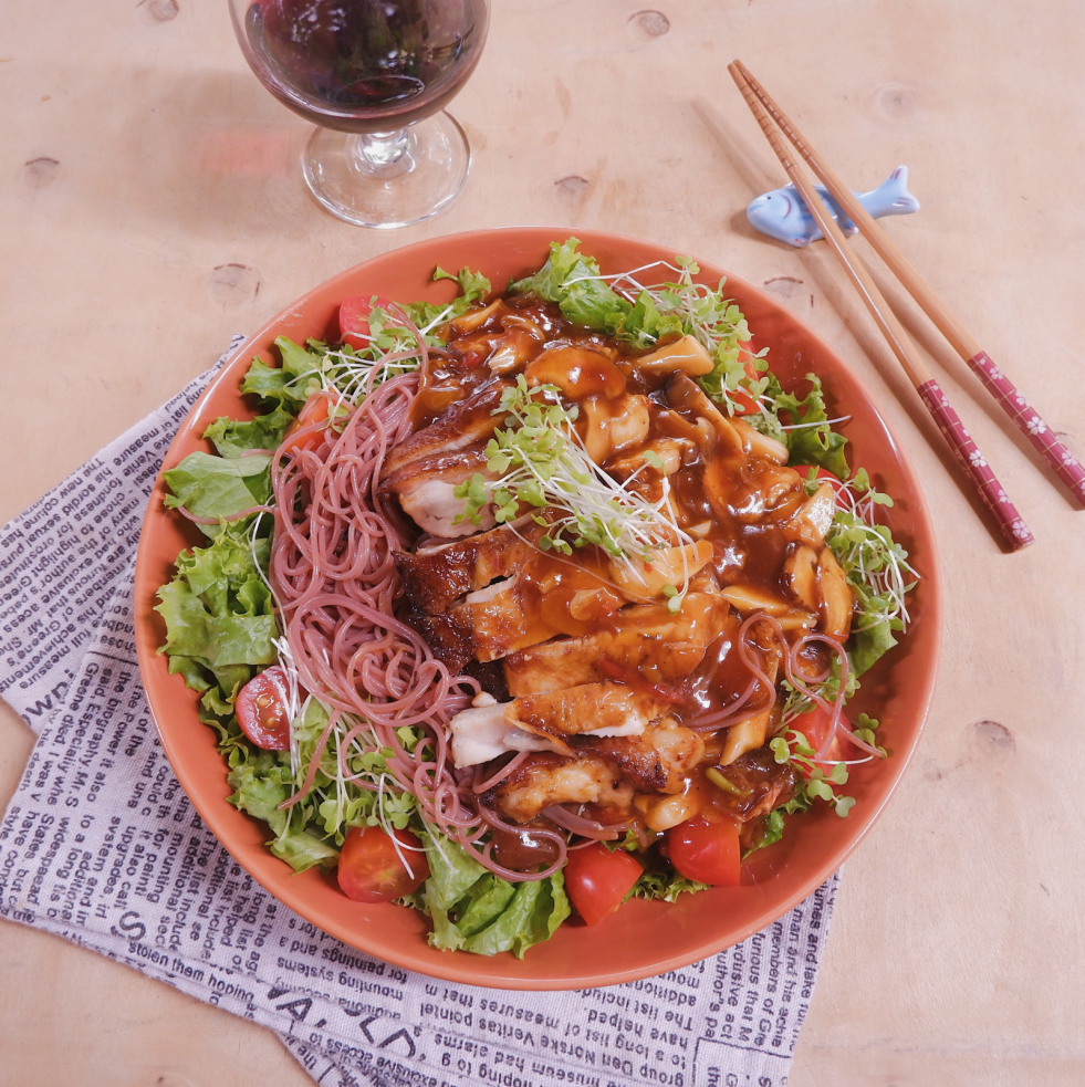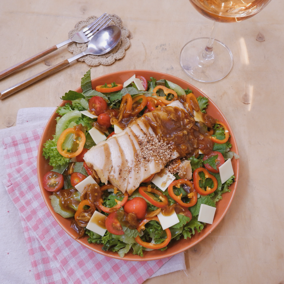 (1 người ăn) Nửa cây xà lách 4 cái lá vừng 140g thịt ức gà 2 quả ớt trái cây 1 lát phô mai lá 4-5 quả cà chua bi 2 tbsp xì dầu 1 tbsp sa tế 1 tbsp dầu hào 1 tsp bột năng 1 tsp nước lọc 1 tbsp hành khô 1/2… Continue reading Salad ức gà nướng với ớt trái cây