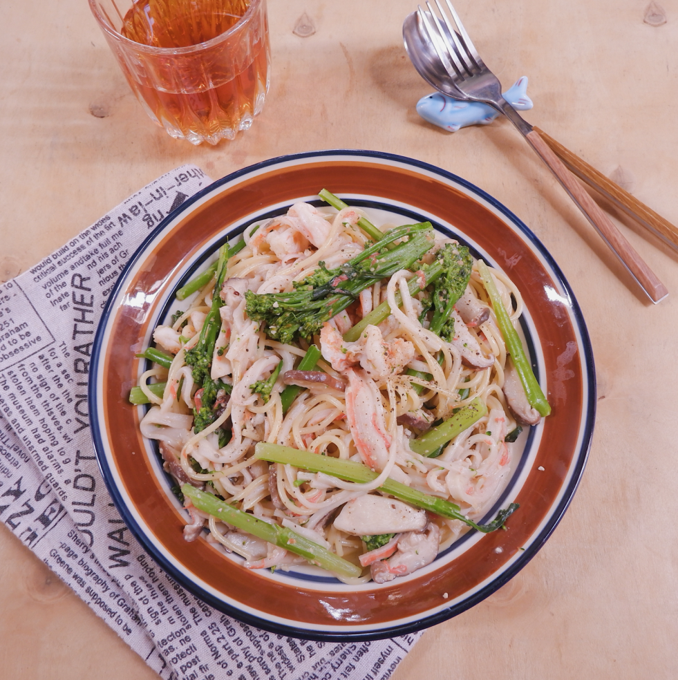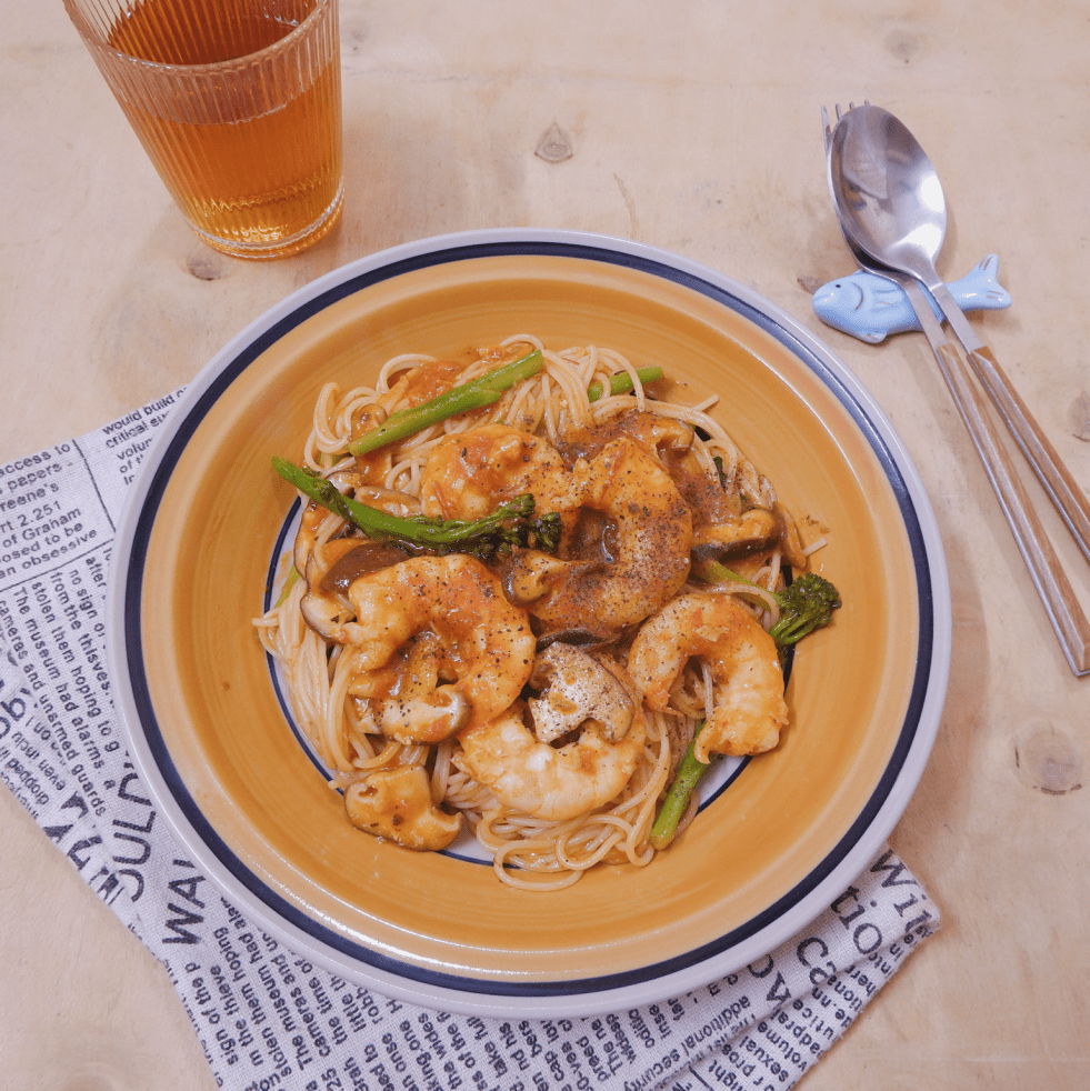 (2 người ăn) 120g mì ống sợi nhỏ Capellini (hoặc 140g spaghetti) 200g tôm tươi bóc vỏ 300g súp lơ baby 5-6 cây nấm hương tươi 200g sốt cà chua đóng hộp 1 tbsp dầu oliu 2 tép tỏi to Muối, tiêu và gia vị cơ bản Cách làm: - Đun sôi một nồi nước… Continue reading Mì ống sốt tôm và rau củ