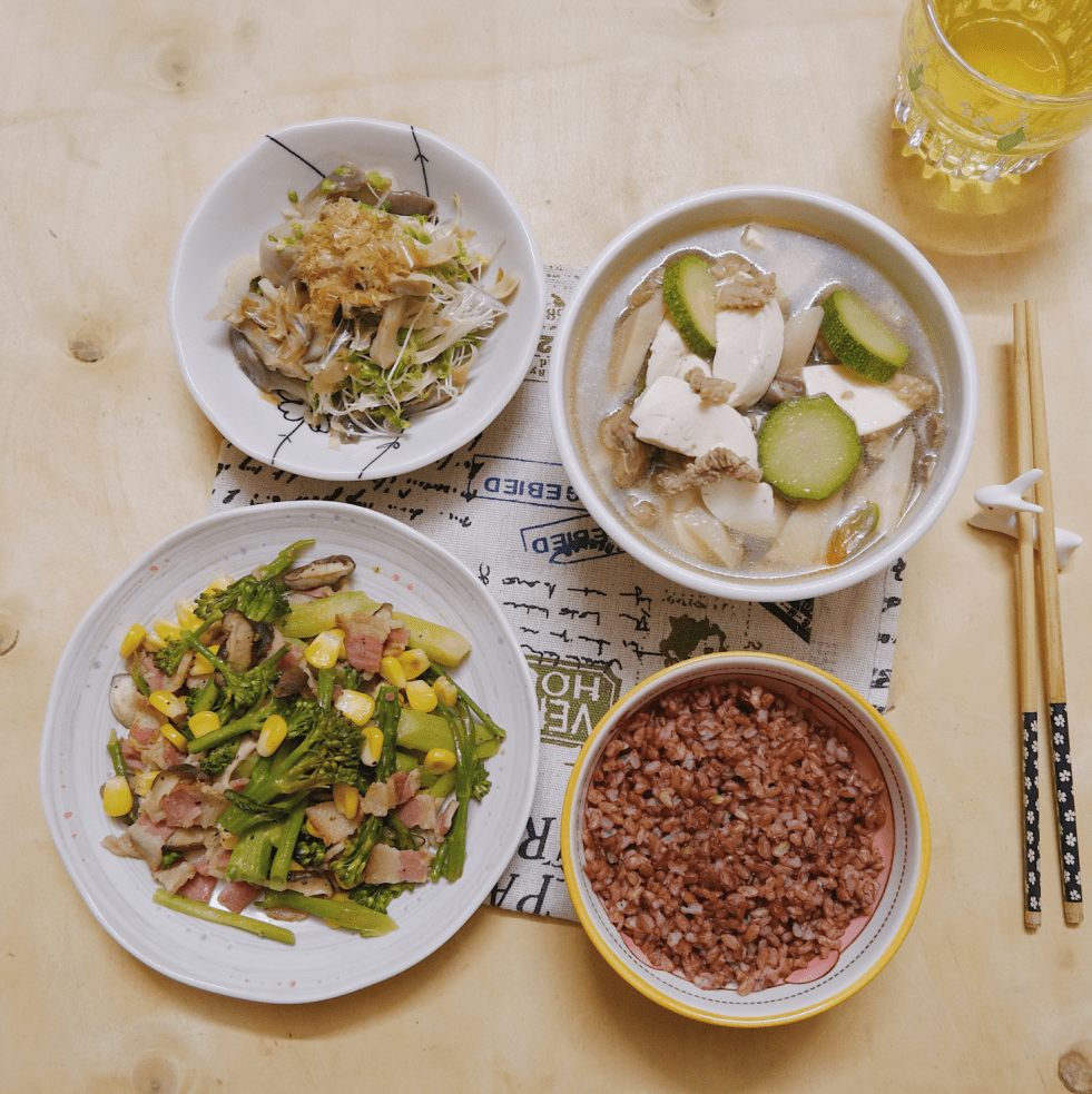 (2 người ăn) *Bông cải baby xào thịt xông khói 10 cây bông cải baby 2 lát thịt xông khói Nửa bắp ngô ngọt 4 cây nấm hương tươi Muối, tiêu và gia vị cơ bản Cách làm: - Bông cải baby tước xơ, cắt bỏ gốc cứng, chia làm 2-3 khúc vừa ăn. -… Continue reading #16 Bông cải baby xào thịt xông khói, canh nấm thịt bò và rau mầm trộn nấm.