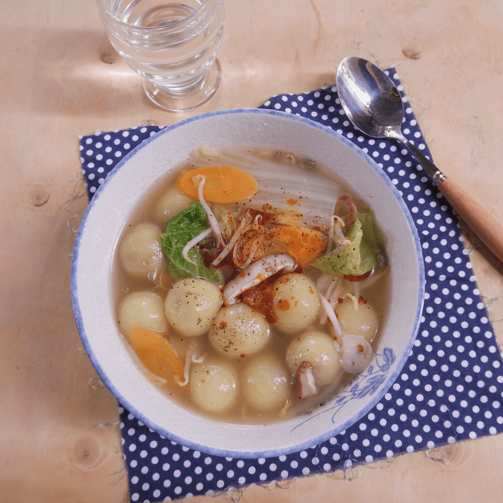 (2 người ăn) 200g bột nếp khô 160g nước 200g thịt bò xay 1 tbsp xì dầu Nửa củ cà rốt 1/4 cây cải thảo 4-5 cây nấm hương tươi 60g giá đỗ 800g nước dùng gà không muối 1 tbsp sa tế 1 chút dầu vừng Muối, tiêu và gia vị cơ bản Cách… Continue reading Canh bánh trôi nhân thịt bò