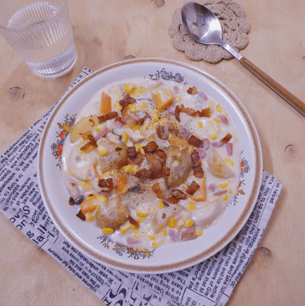 (2 người ăn) 3 củ khoai tây to (~250g) 1 củ cà rốt 1 bắp ngô ngọt 2 cây nấm đùi gà 2 lát thịt xông khói 4 lát dăm bông vai hấp 200g sữa tươi 3 tbsp bột mì 3 tbsp bơ động vật không muối (~45g) Muối, tiêu và gia vị cơ bản… Continue reading Súp kem khoai tây với thịt xông khói