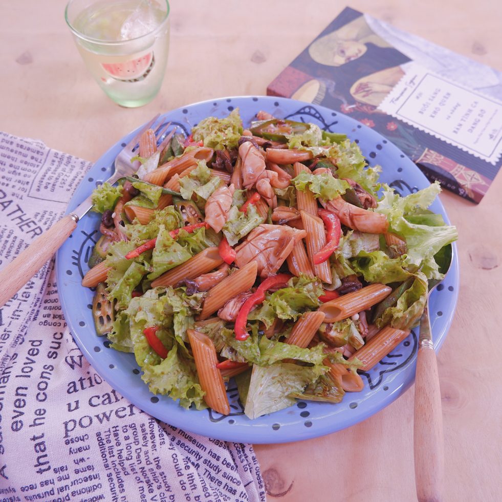 Salad nui ống với mực và rau củ